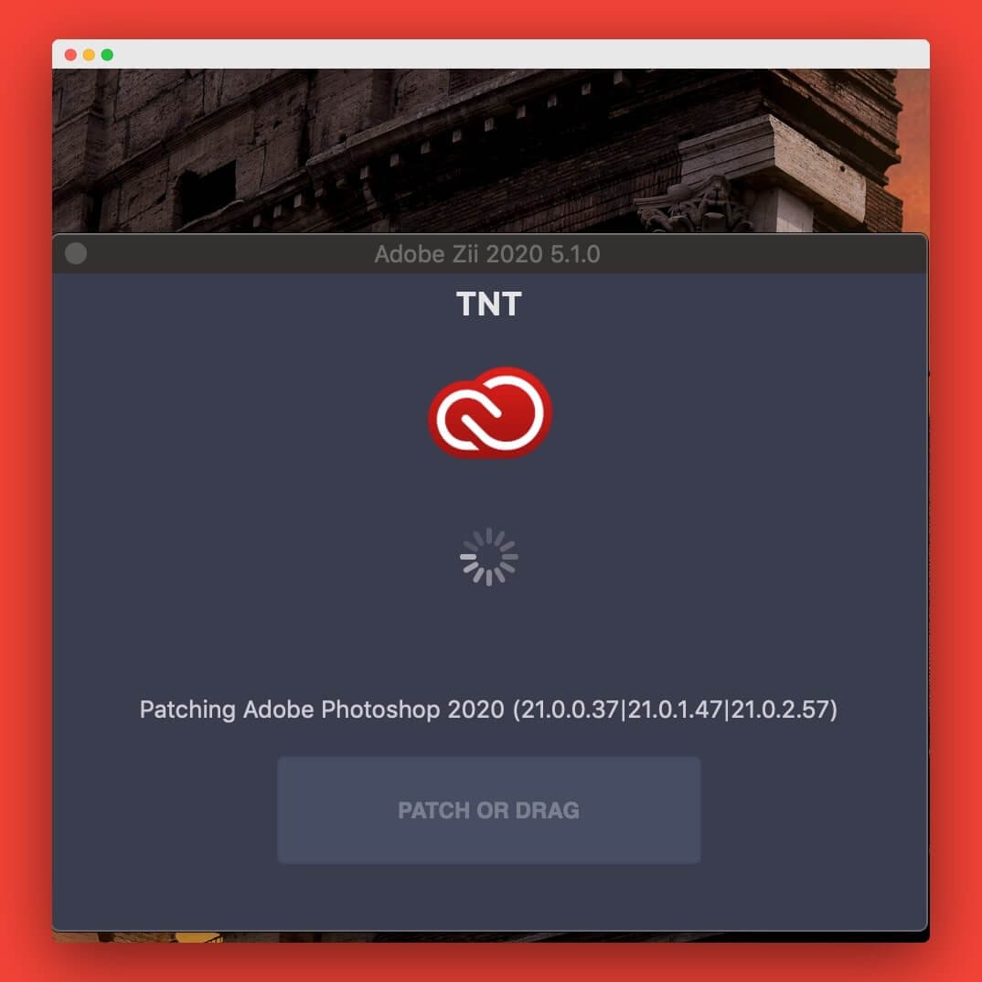 Adobe Photoshop 2020应用程序到 Zii 的PATCH OR DRAG处。